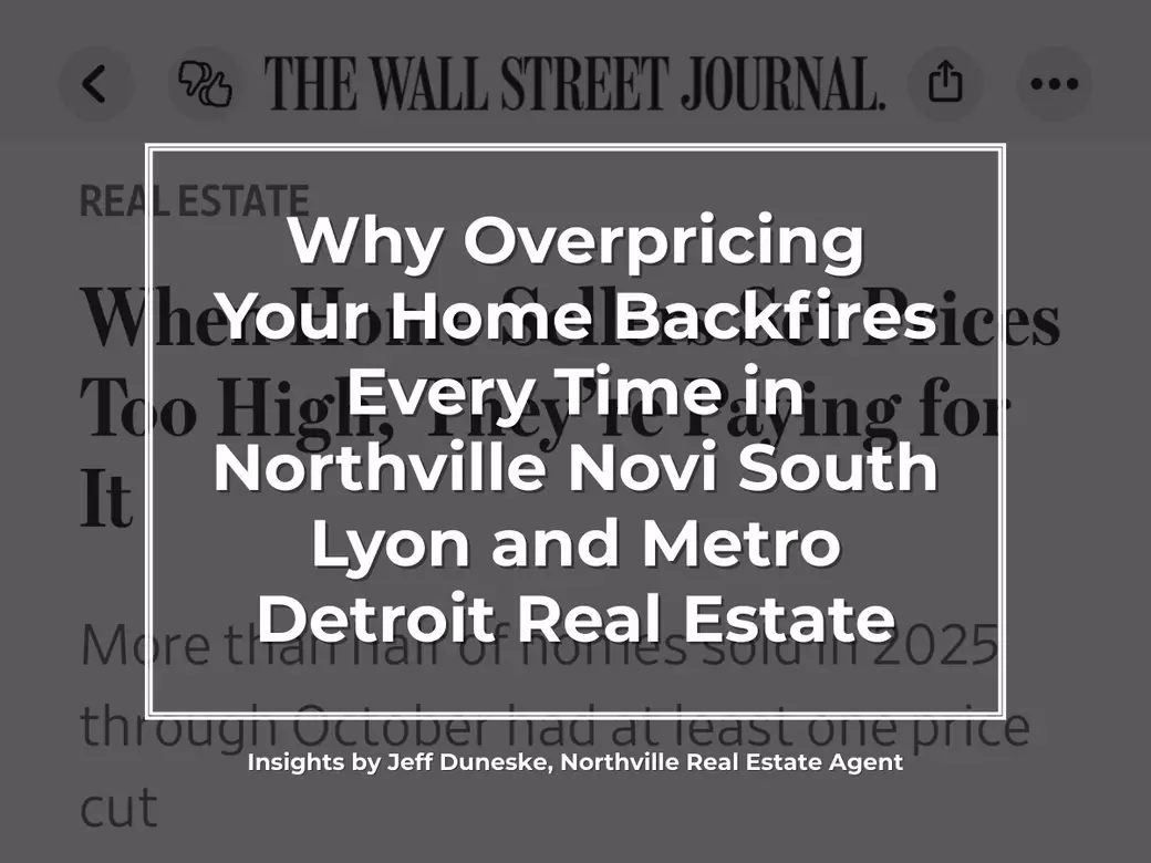 When the Wall Street Journal releases a story about home pricing trends, homeowners pay attention. And their recent report outlined a concern that is showing up in our local Metro Detroit market every single day: many sellers are starting too high, and it is costing them real money.